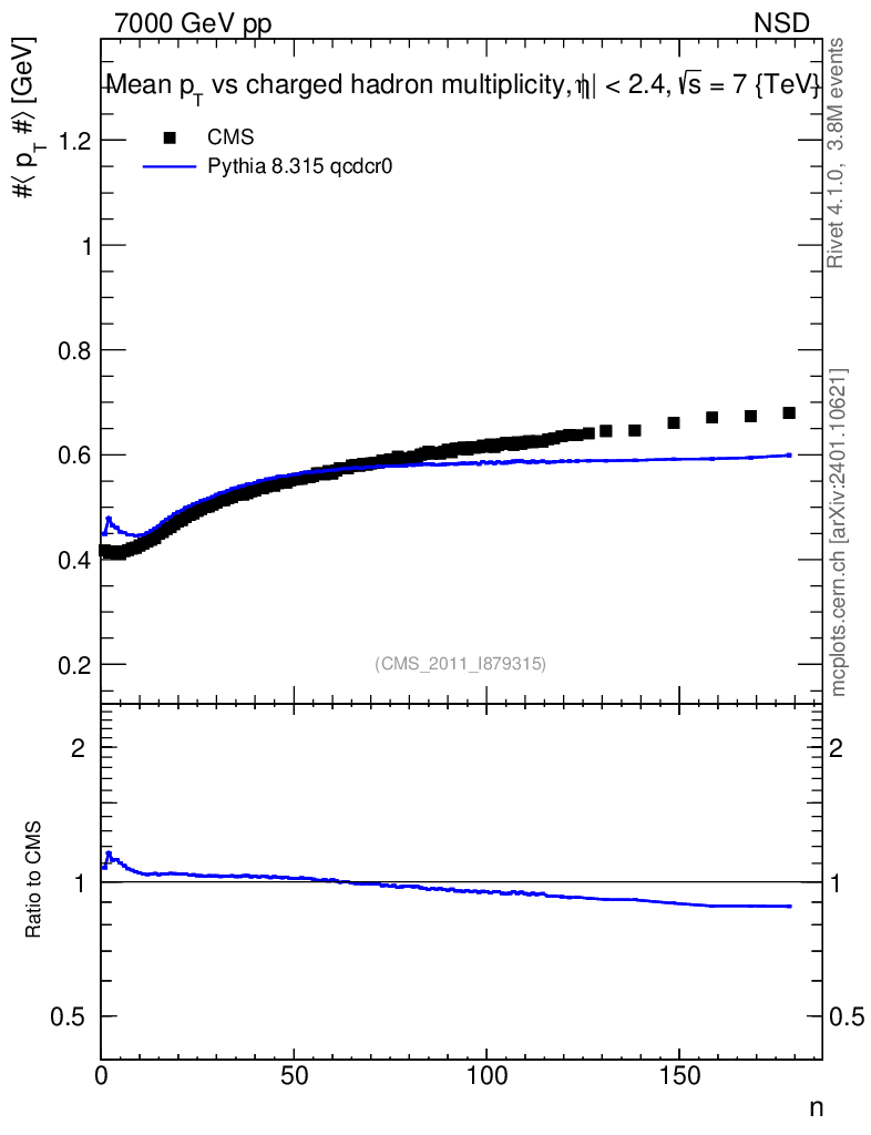 Lines: data, pythia8 8.315 qcdcr0 |
