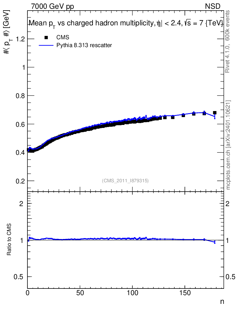 Lines: data, pythia8 8.313 rescatter |