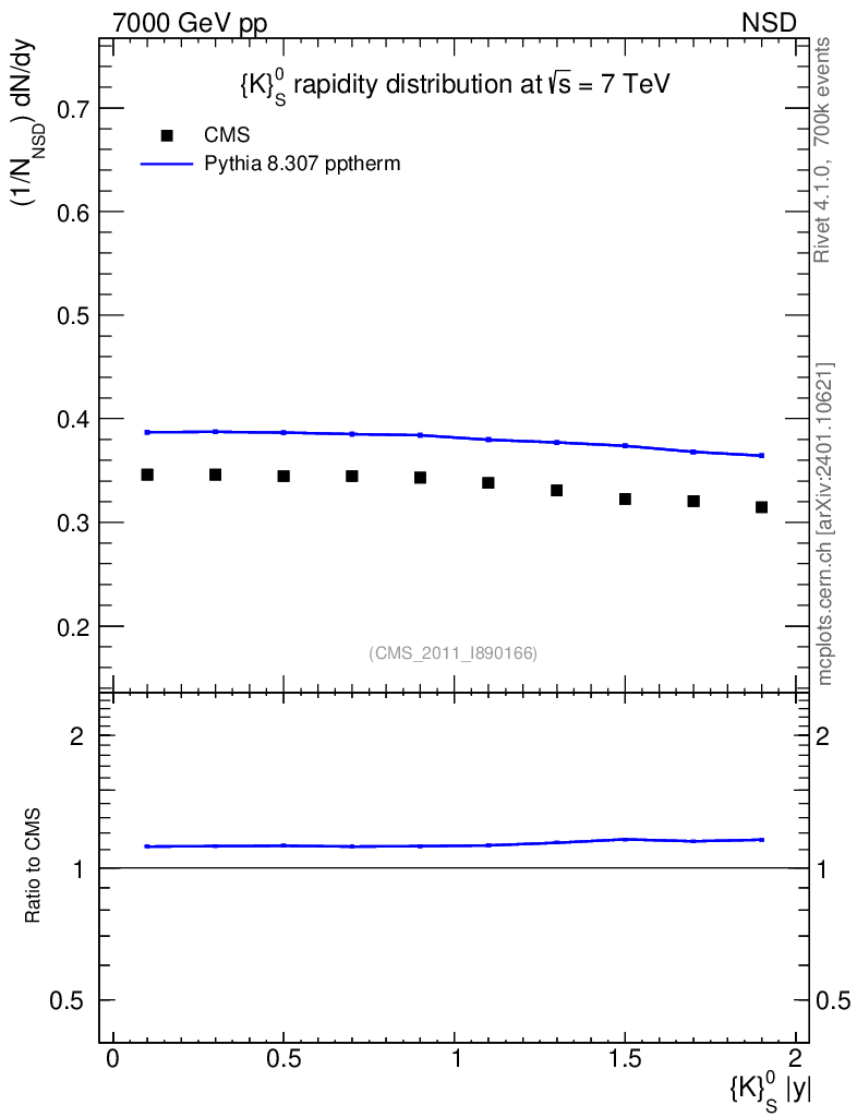 Lines: data, pythia8 8.307 pptherm |