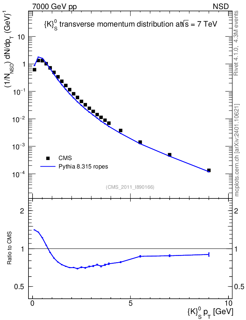 Lines: data, pythia8 8.315 ropes |