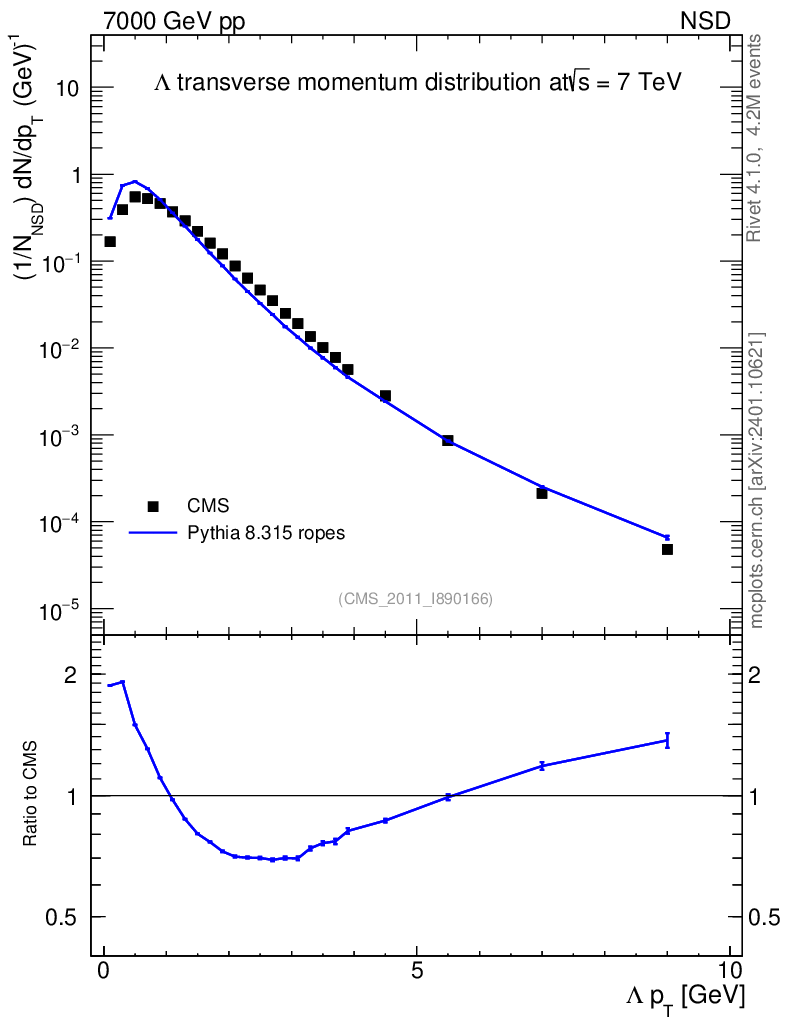 Lines: data, pythia8 8.315 ropes |