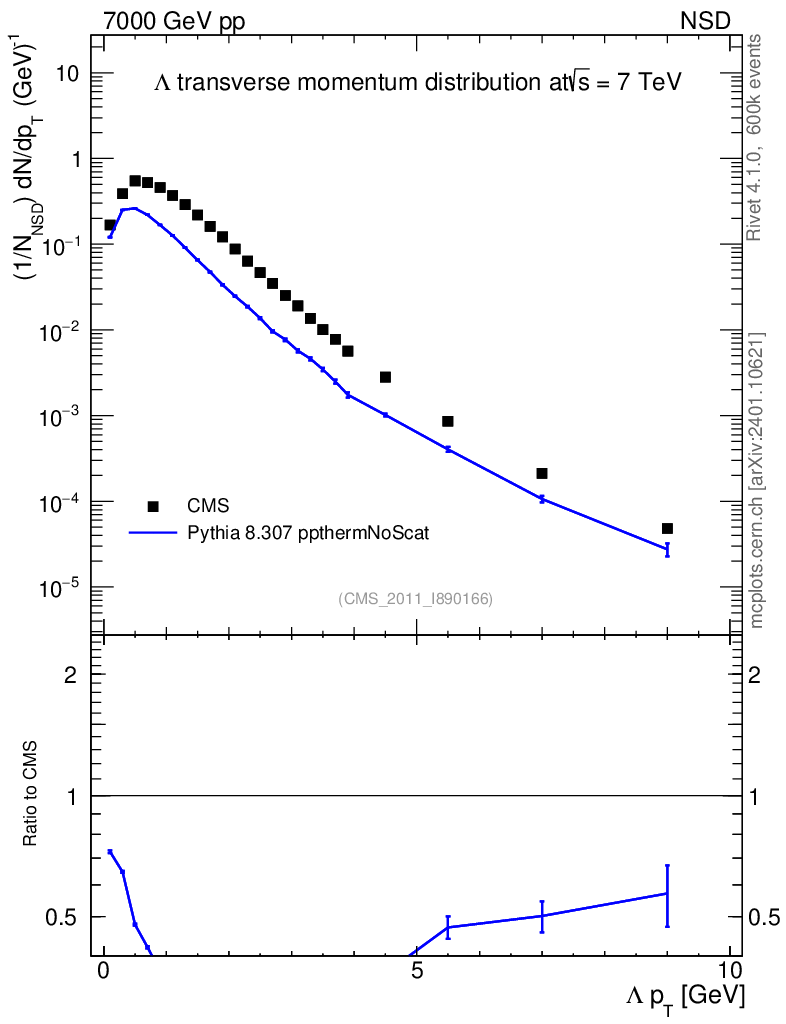 Lines: data, pythia8 8.307 ppthermNoScat |