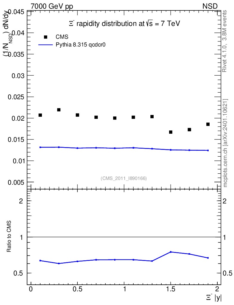 Lines: data, pythia8 8.315 qcdcr0 |