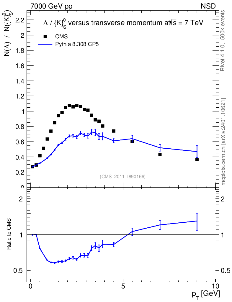 Observable: Λ/K0S vs pT