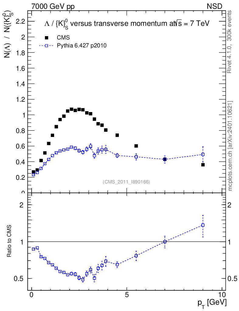 Observable: Λ/K0S vs pT