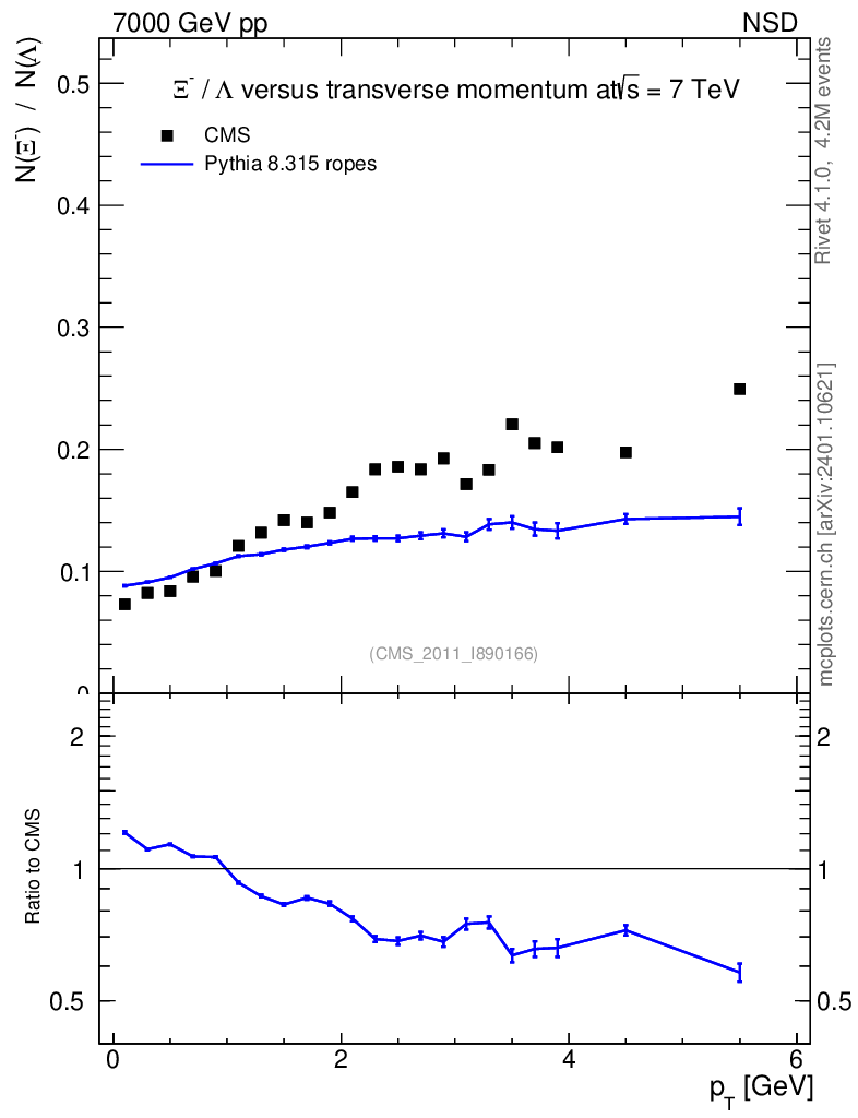 Lines: data, pythia8 8.315 ropes |
