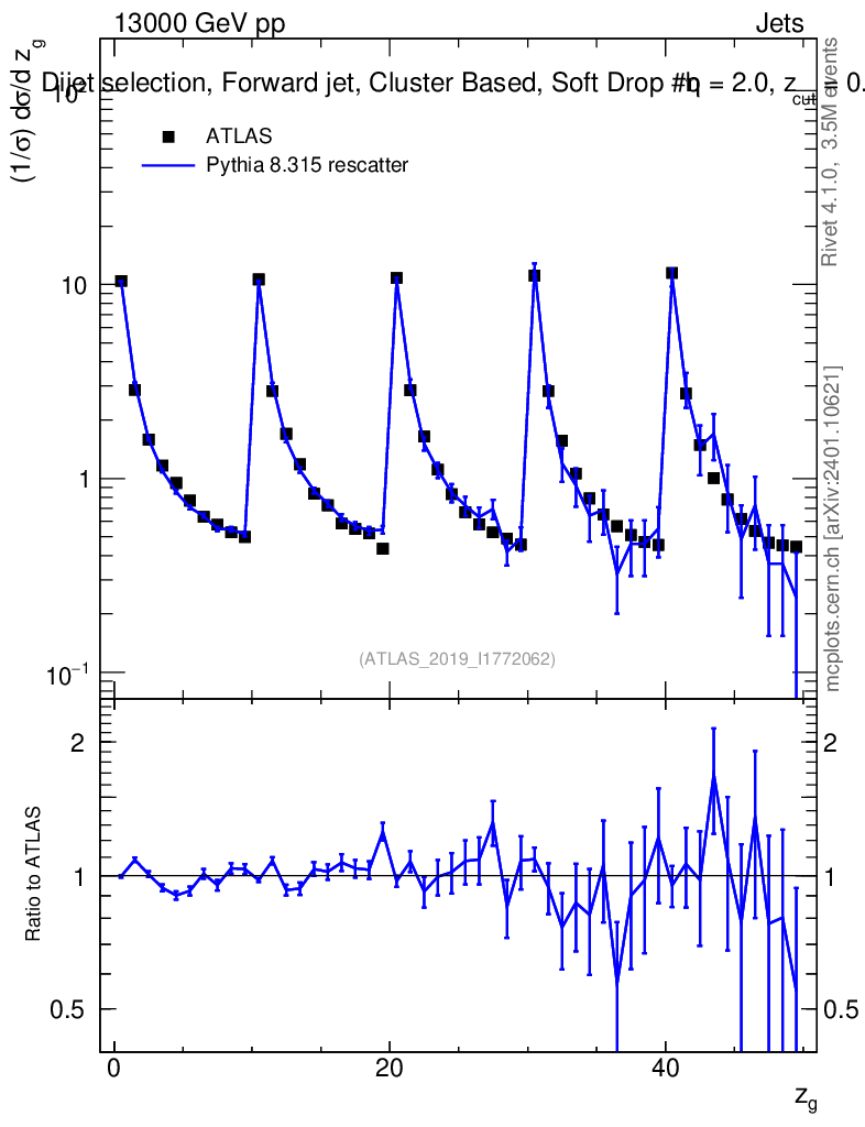 Lines: data, pythia8 8.315 rescatter |