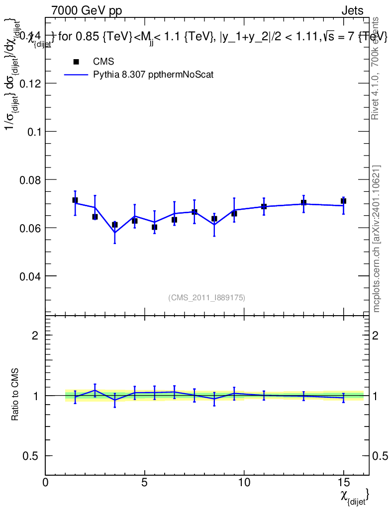 Lines: data, pythia8 8.307 ppthermNoScat |
