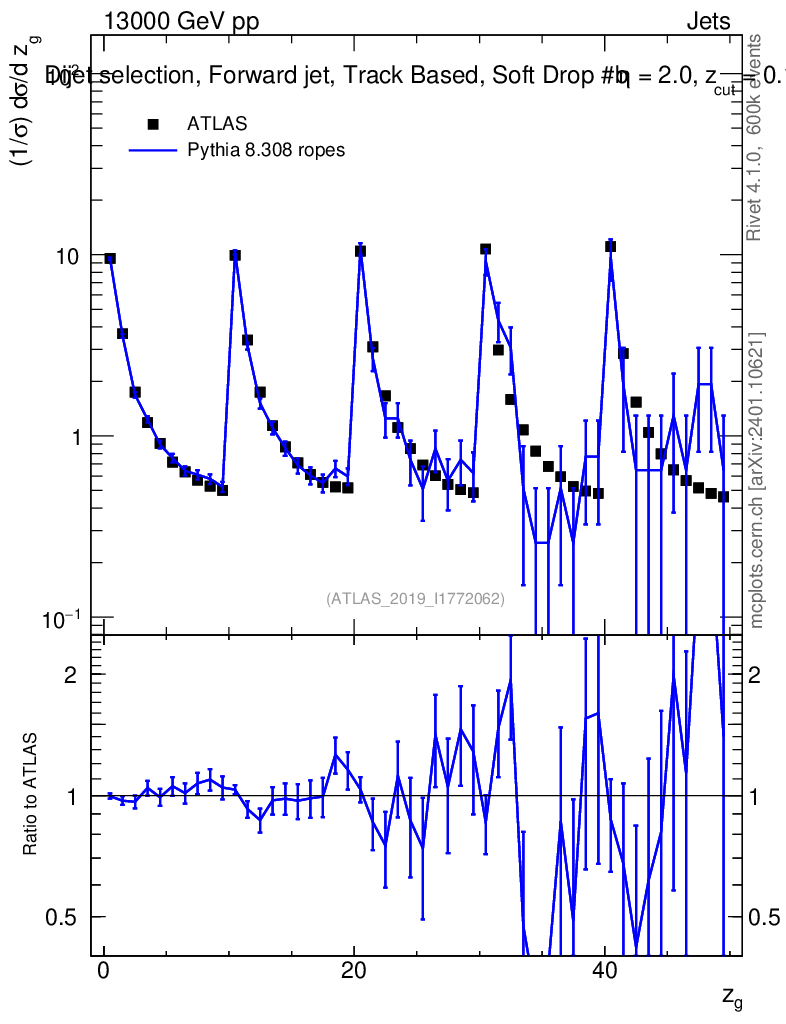 Lines: data, pythia8 8.308 ropes |