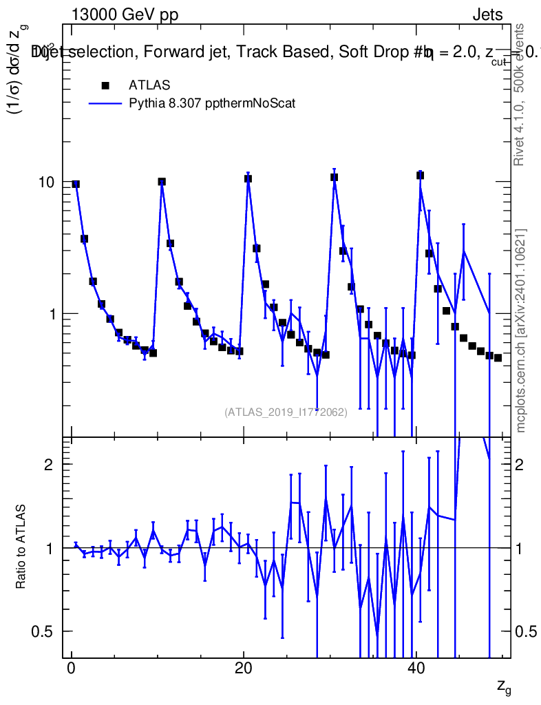 Lines: data, pythia8 8.307 ppthermNoScat |
