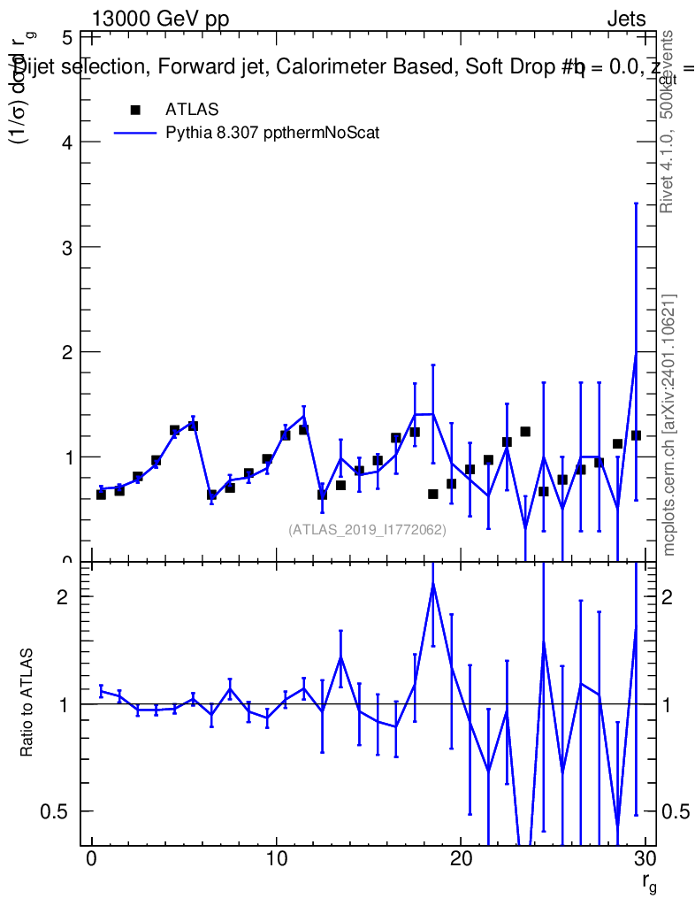 Lines: data, pythia8 8.307 ppthermNoScat |