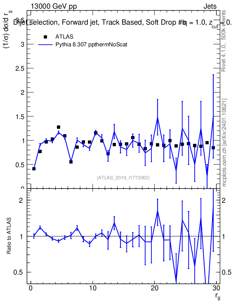 Lines: data, pythia8 8.307 ppthermNoScat |