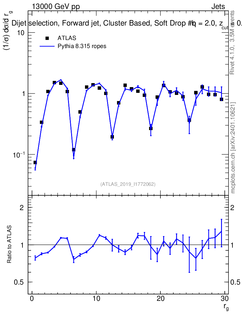 Lines: data, pythia8 8.315 ropes |
