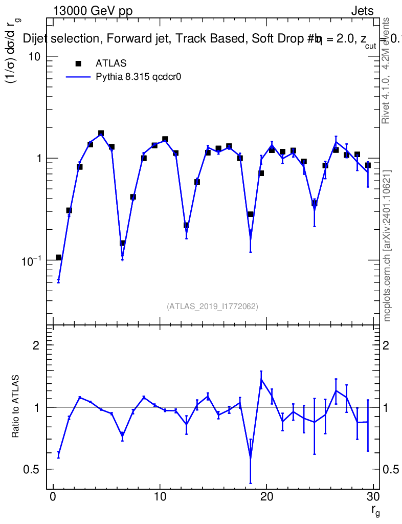 Lines: data, pythia8 8.315 qcdcr0 |