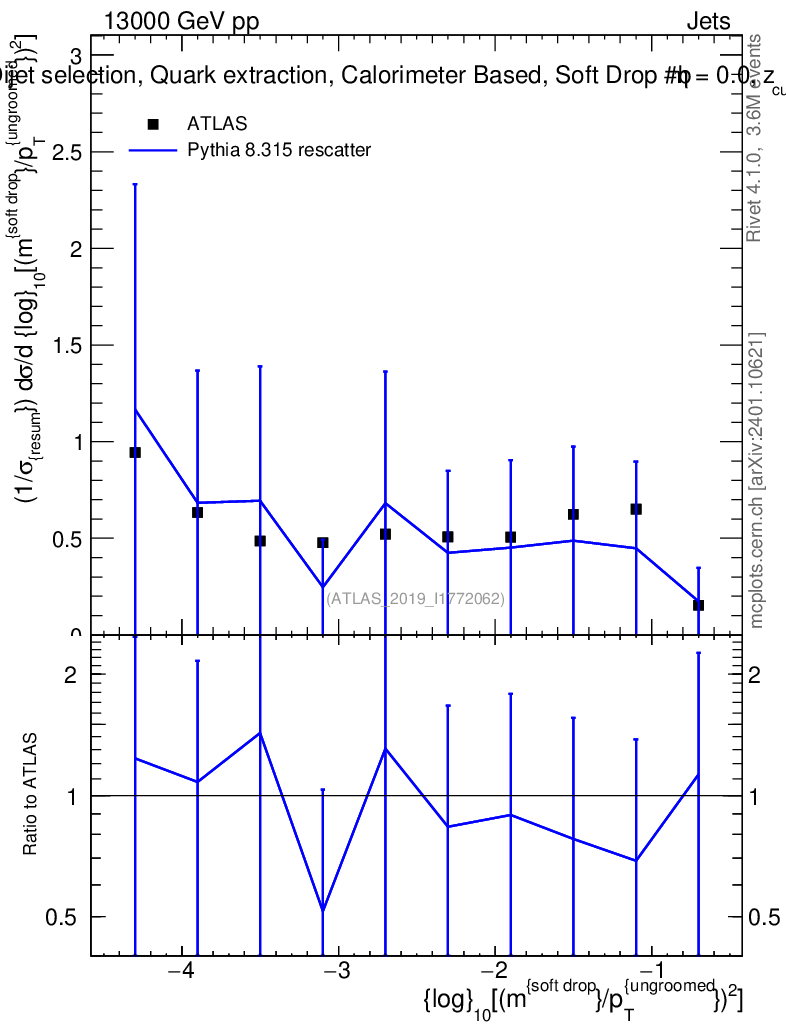 Lines: data, pythia8 8.315 rescatter |