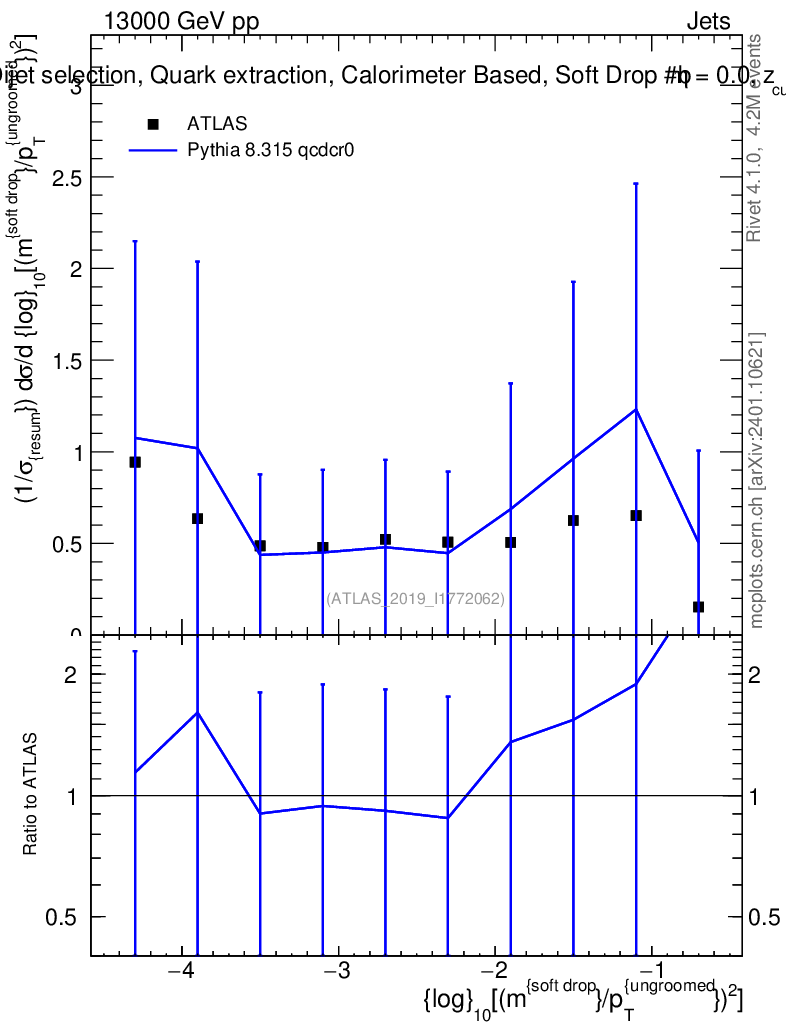 Lines: data, pythia8 8.315 qcdcr0 |