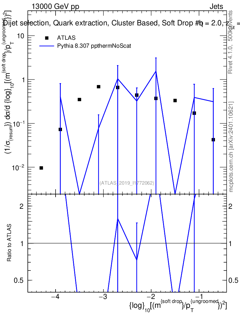 Lines: data, pythia8 8.307 ppthermNoScat |