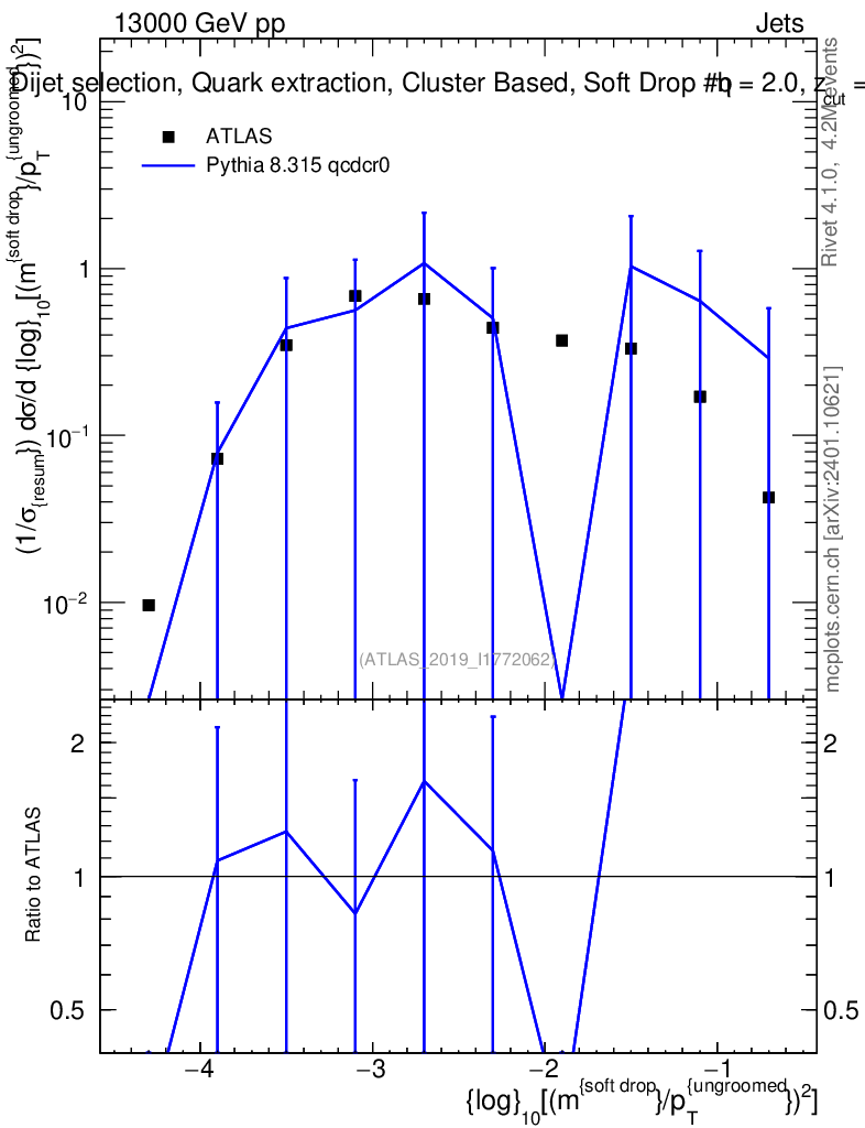 Lines: data, pythia8 8.315 qcdcr0 |