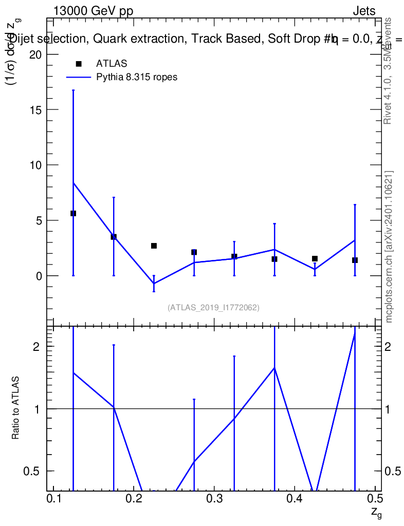 Lines: data, pythia8 8.315 ropes |