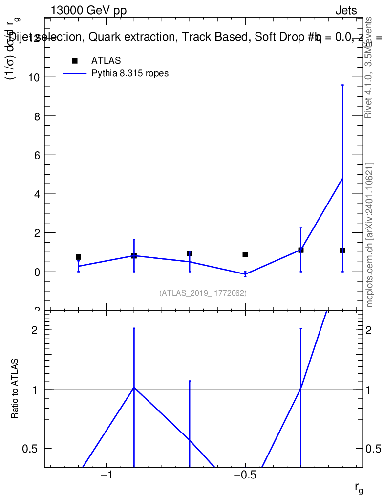 Lines: data, pythia8 8.315 ropes |