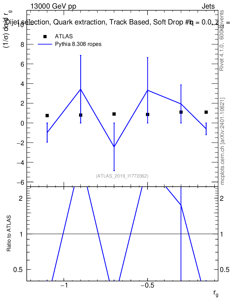 Lines: data, pythia8 8.308 ropes |