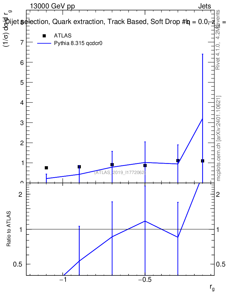 Lines: data, pythia8 8.315 qcdcr0 |