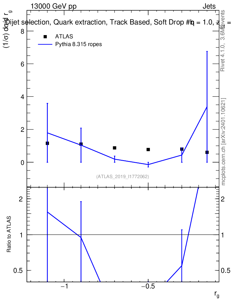 Lines: data, pythia8 8.315 ropes |