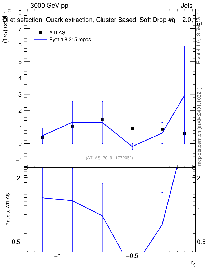 Lines: data, pythia8 8.315 ropes |