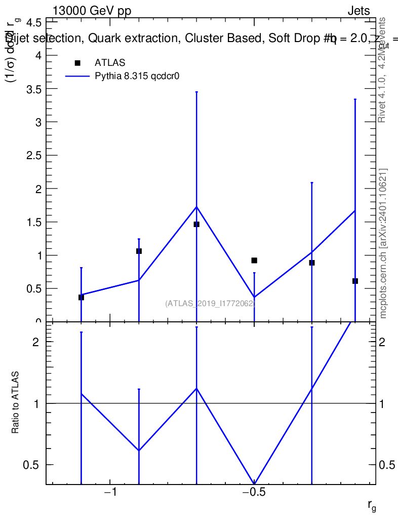 Lines: data, pythia8 8.315 qcdcr0 |