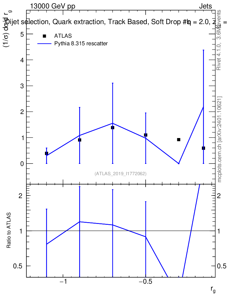 Lines: data, pythia8 8.315 rescatter |