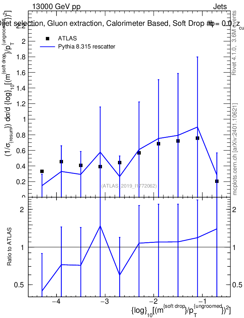 Lines: data, pythia8 8.315 rescatter |