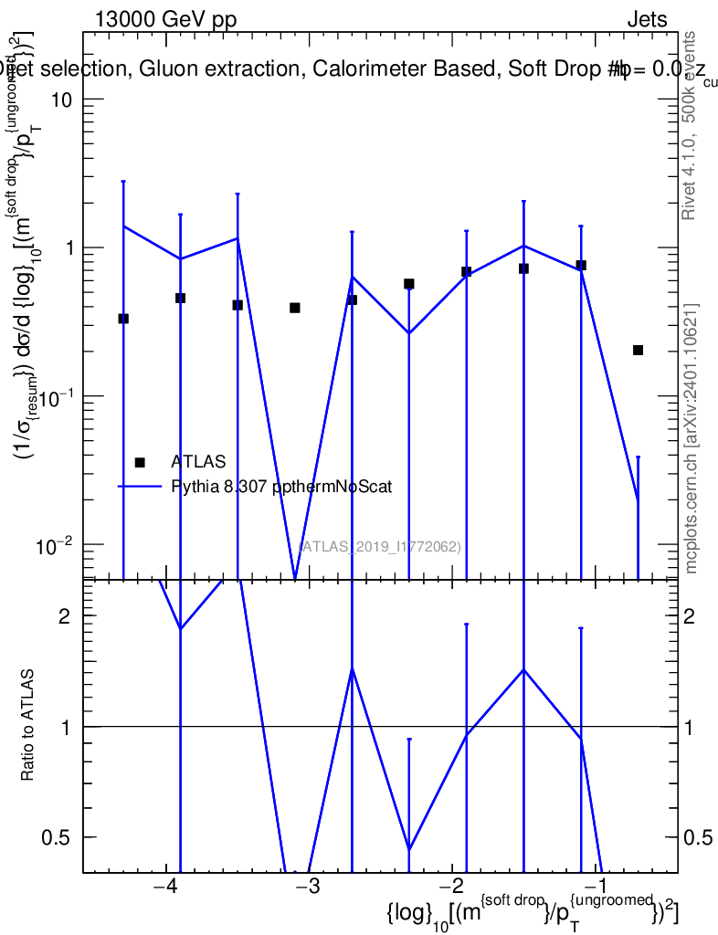 Lines: data, pythia8 8.307 ppthermNoScat |