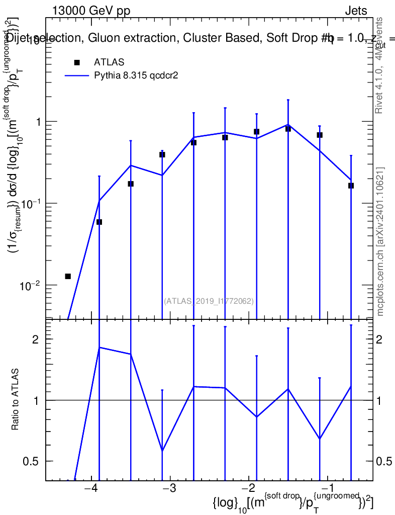 Lines: data, pythia8 8.315 qcdcr2 |