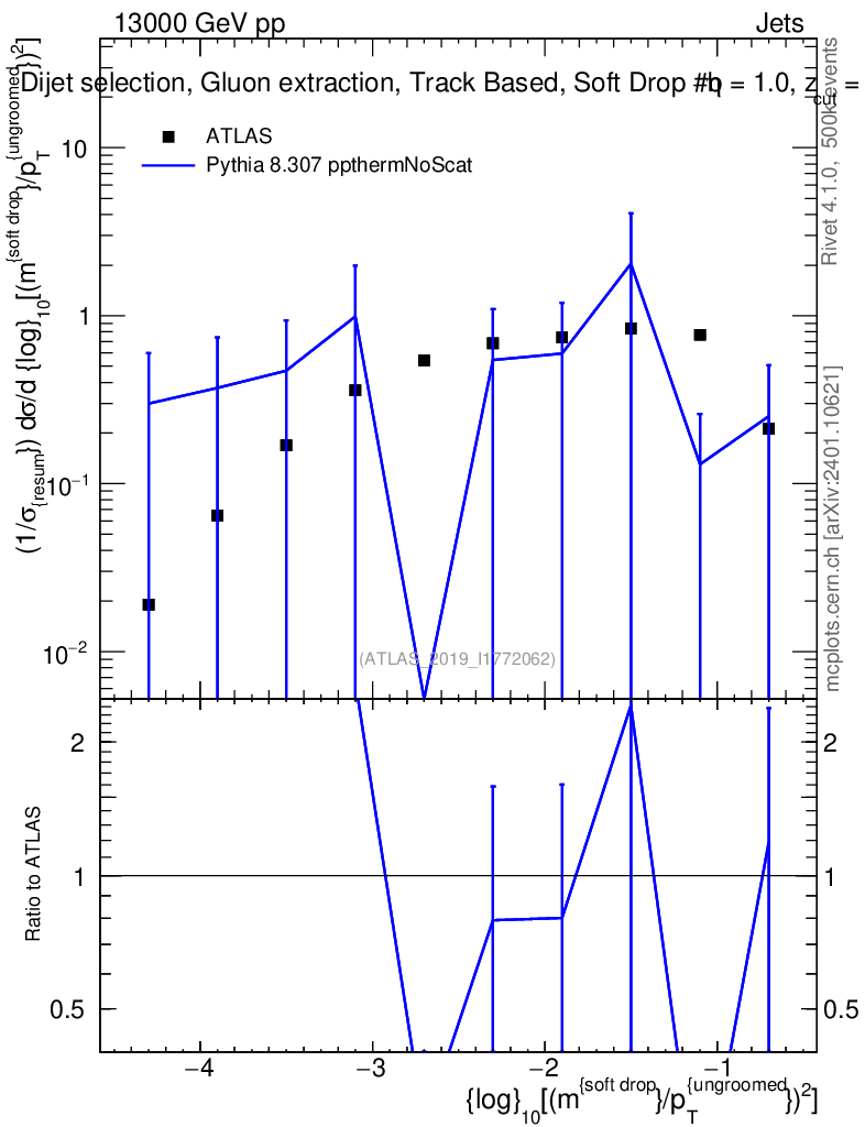 Lines: data, pythia8 8.307 ppthermNoScat |