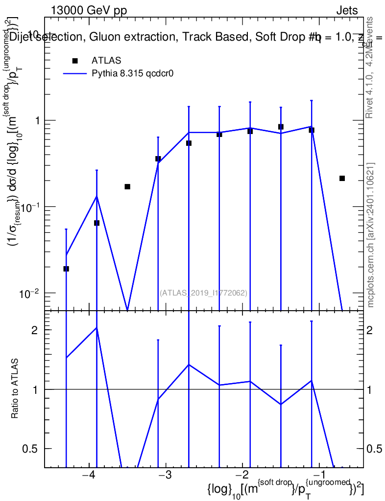 Lines: data, pythia8 8.315 qcdcr0 |