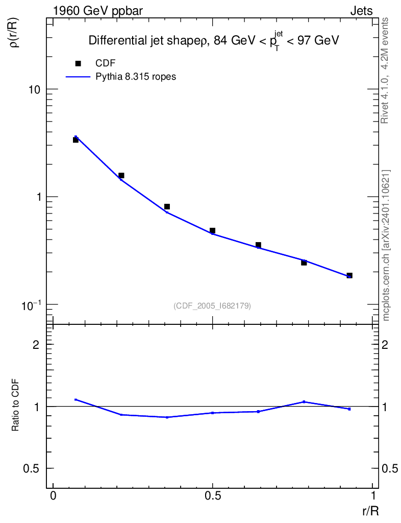 Lines: data, pythia8 8.315 ropes |