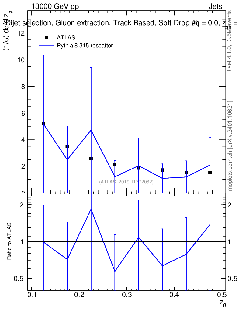 Lines: data, pythia8 8.315 rescatter |