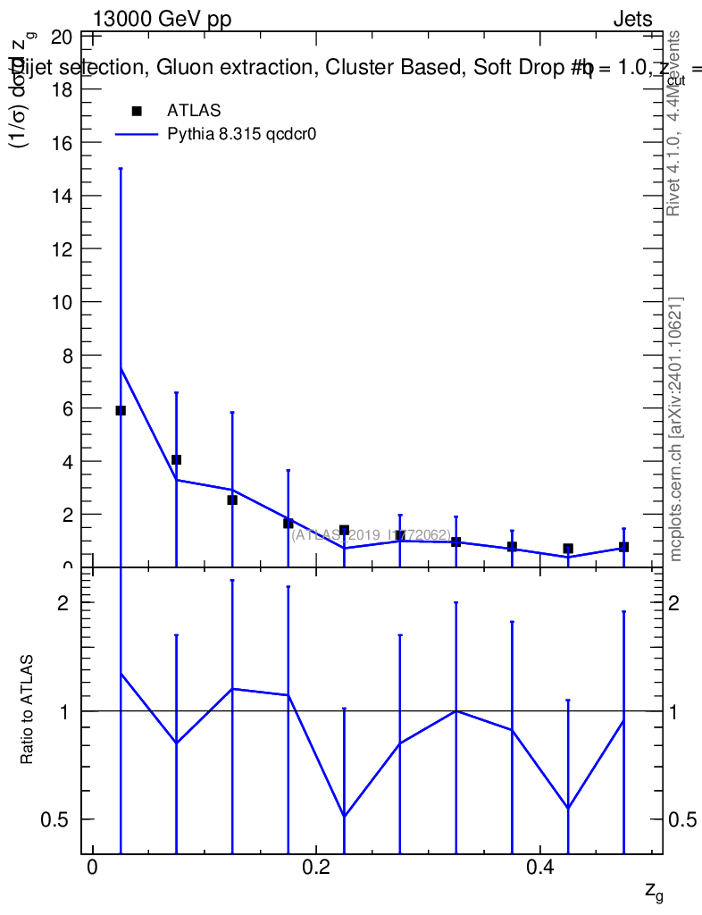 Lines: data, pythia8 8.315 qcdcr0 |
