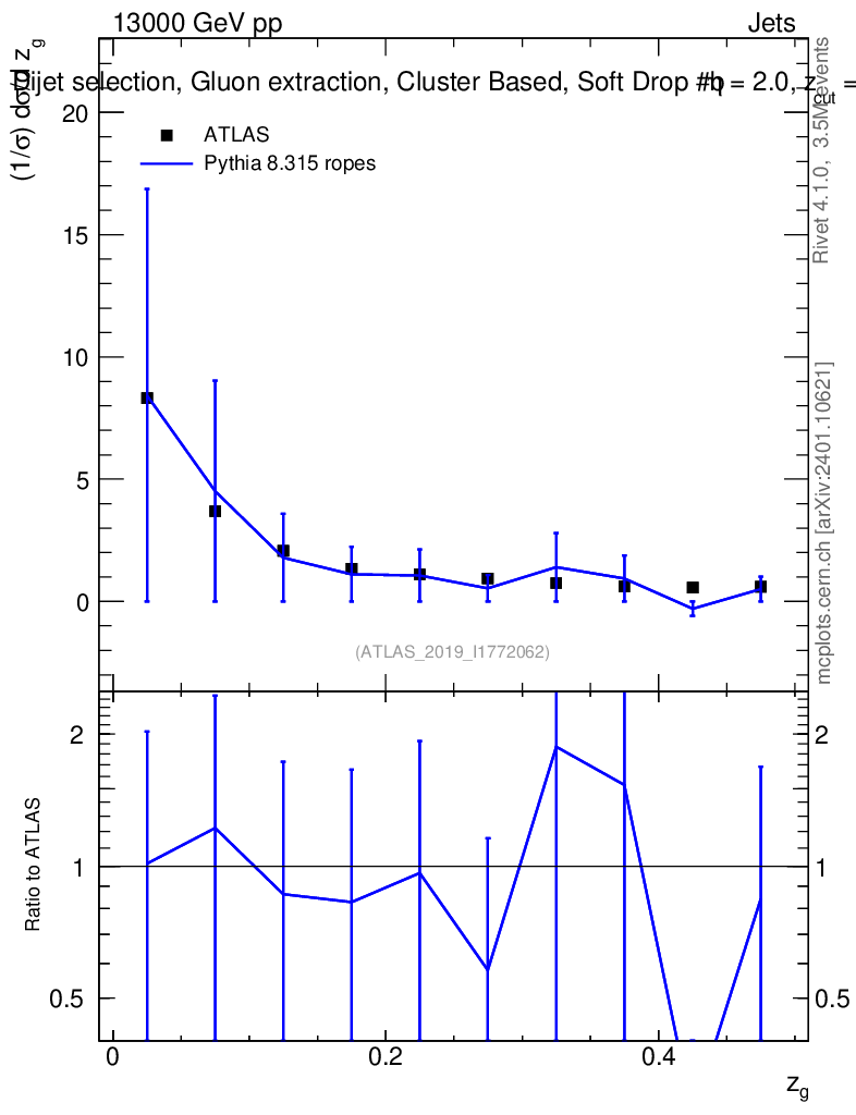 Lines: data, pythia8 8.315 ropes |