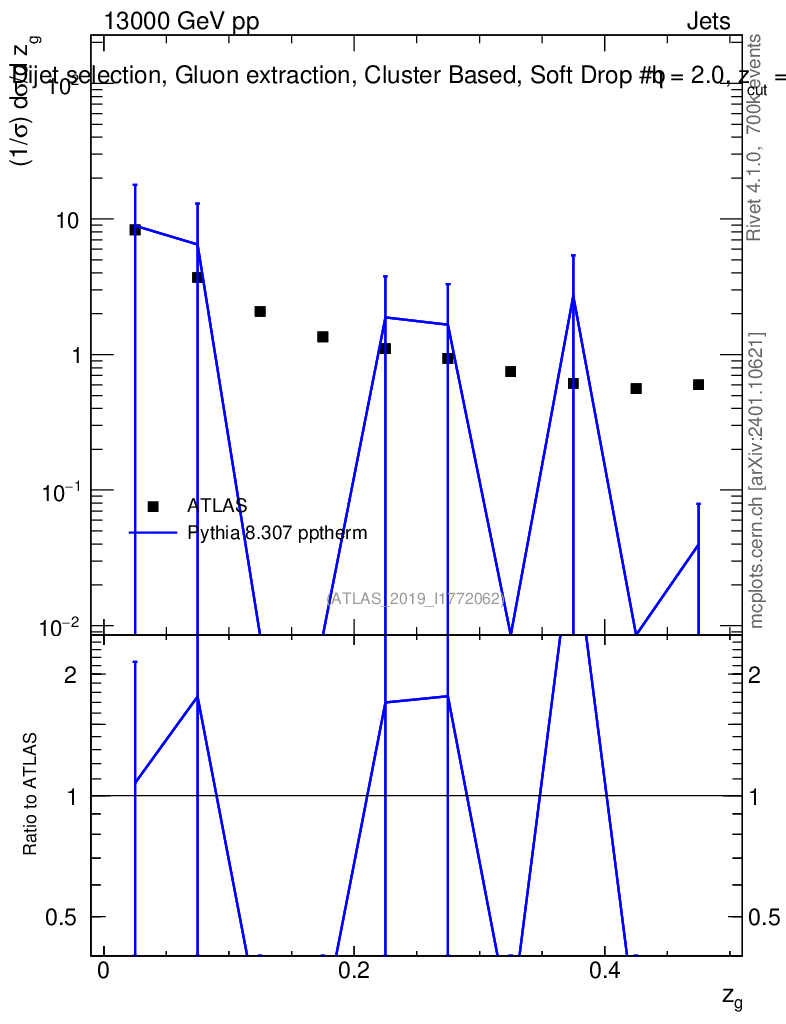 Lines: data, pythia8 8.307 pptherm |
