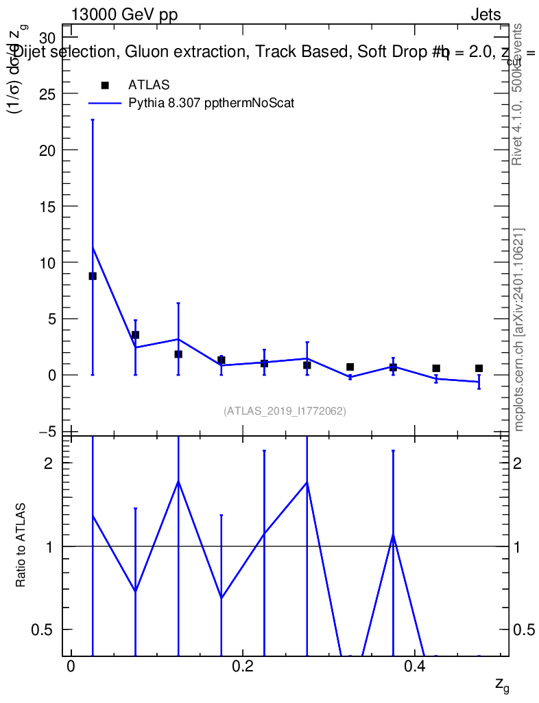 Lines: data, pythia8 8.307 ppthermNoScat |