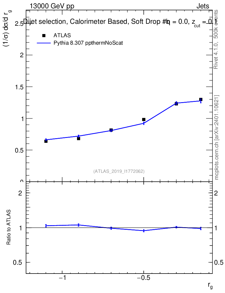 Lines: data, pythia8 8.307 ppthermNoScat |
