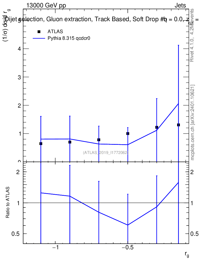 Lines: data, pythia8 8.315 qcdcr0 |