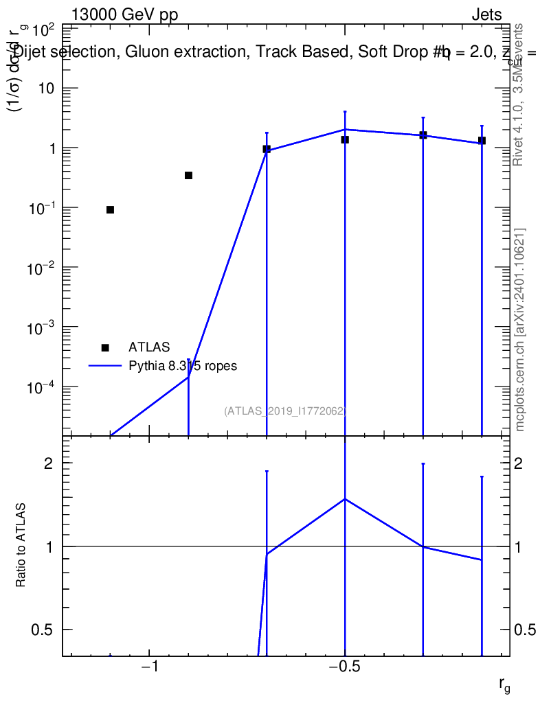 Lines: data, pythia8 8.315 ropes |