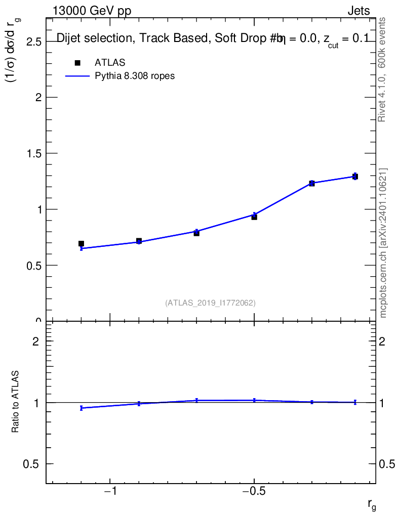Lines: data, pythia8 8.308 ropes |