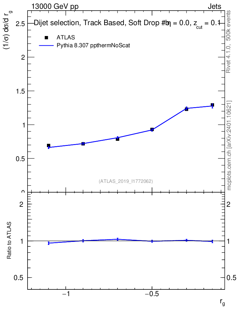Lines: data, pythia8 8.307 ppthermNoScat |