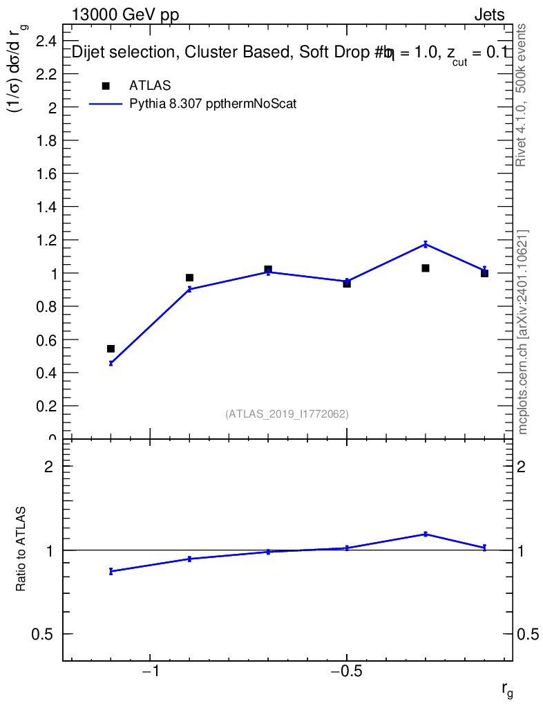 Lines: data, pythia8 8.307 ppthermNoScat |