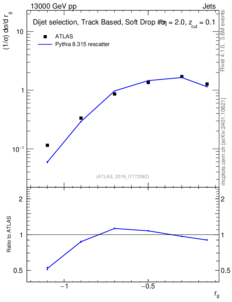 Lines: data, pythia8 8.315 rescatter |