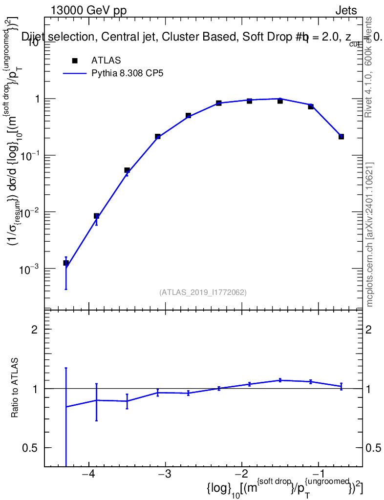 Lines: data, pythia8 8.308 CP5 |