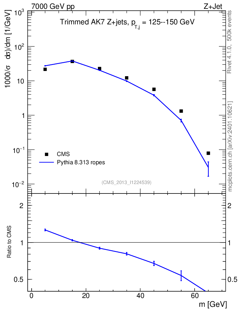 Lines: data, pythia8 8.313 ropes |